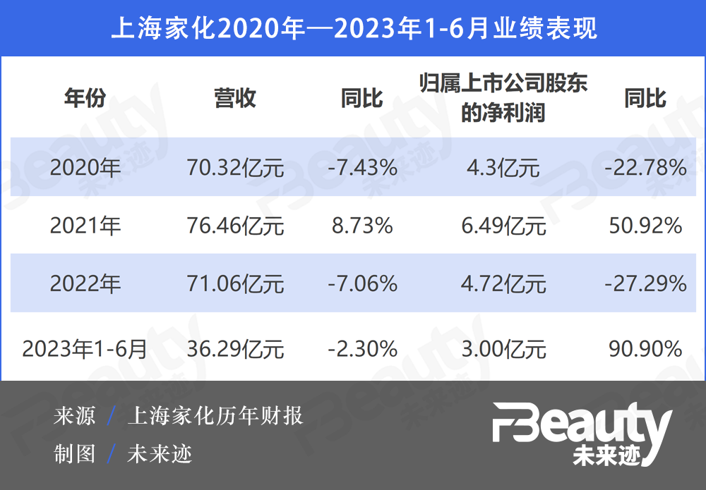 8月28日下午,上海家化公布上半年業(yè)績(jī)情況,財(cái)報(bào)顯示,2023年1-6月,上海家化營(yíng)業(yè)收入達(dá)36.29億元,同比下降2.3%,小幅下滑,但歸屬上市公司股東的凈利潤(rùn)達(dá)3.00億元,同比上升90.90%,取得驚人漲幅,該漲幅也是上海家化2020年至今在上半年取得的最高值。