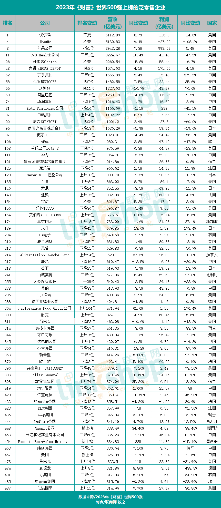 附:2023《財富》世界500強上榜的泛零售企業(yè)榜單