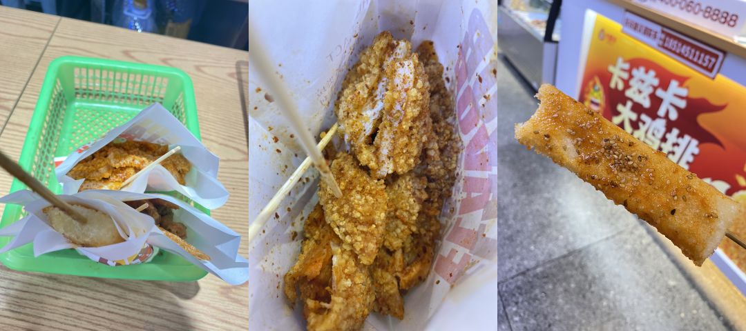 我點的是雞排、雞翅尖和年糕串!疤贸粤恕,我和編輯部的同事們分享,8元的雞翅尖有12個,還個個肥美個頭大。沒錯,我用的是肥美。