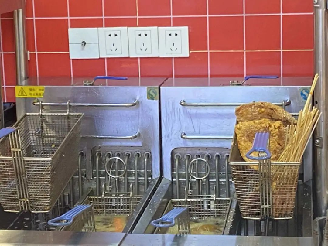 非要談技術(shù)含量的話,可能就是炸貨時間的把控?墒侨缃窀呒夵c的油鍋早就可以進行時間設(shè)置了,凍品和調(diào)料大概率是從工廠進貨的,油鍋時間是提前設(shè)備好的,炸貨店的店員就好像瑞幸的咖啡師,只需要會按鍵就好了,剩下的早早都【提前設(shè)定】好。