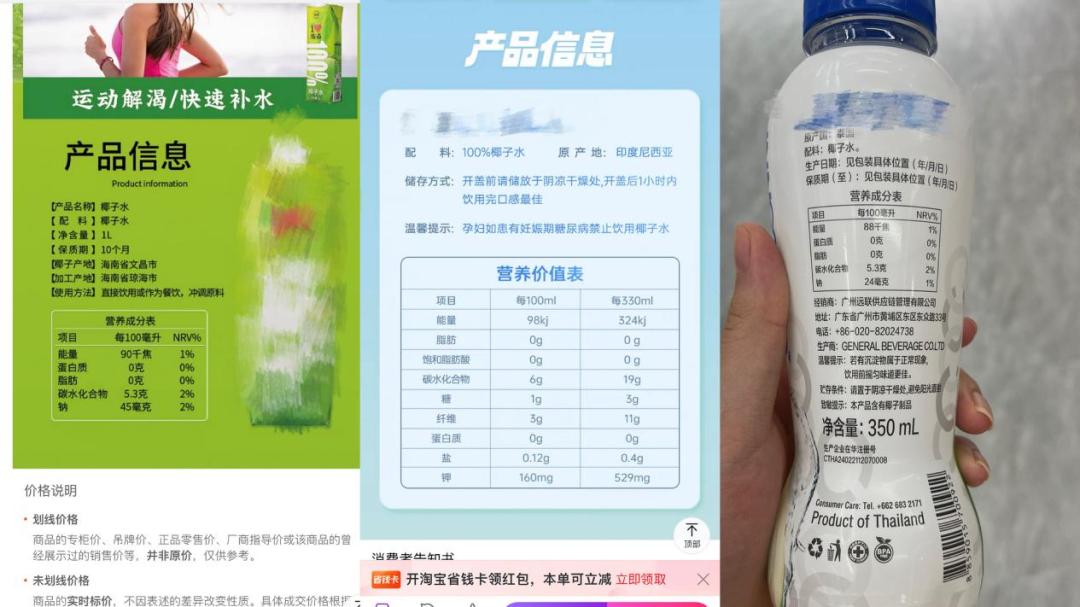“有一些配料,通過第三方機構(gòu)檢測是檢測不出來的。比如說加水稀釋,因為椰子水的成分中也是含水的,所以根本沒有辦法檢測出它是不是有添加,糖也是一樣的,椰子水里面本身就含糖,所以說檢測不出來它到底是天然的糖還是后加的糖,椰子水的品質(zhì)就會參差不齊,不同品牌喝到嘴里的味道也會不一樣的。”錢俊杰解釋道。