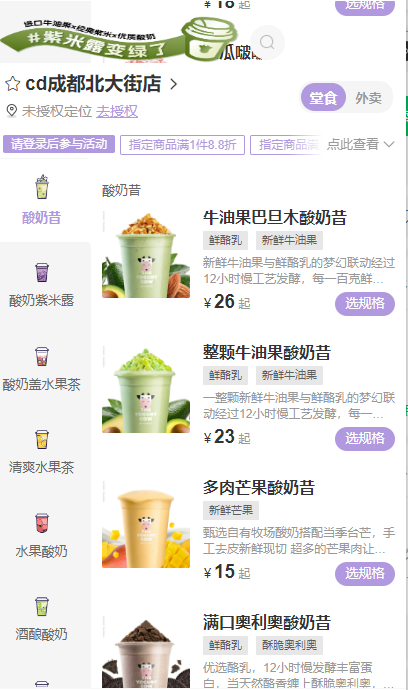 茉酸奶目前主要分布在一線、新一線城市,主打“一杯奶昔等于一顆牛油果”的心智。與同時(shí)包含酸奶、果茶、奶茶等多品類的現(xiàn)制酸奶店不同,茉酸奶的產(chǎn)品結(jié)構(gòu)較簡(jiǎn)單,主推酸奶奶昔和酸奶系列?谖渡戏譃檎信朴凸推渌叨说乃,通過添加堅(jiān)果或甜品小料來(lái)豐富SKU。