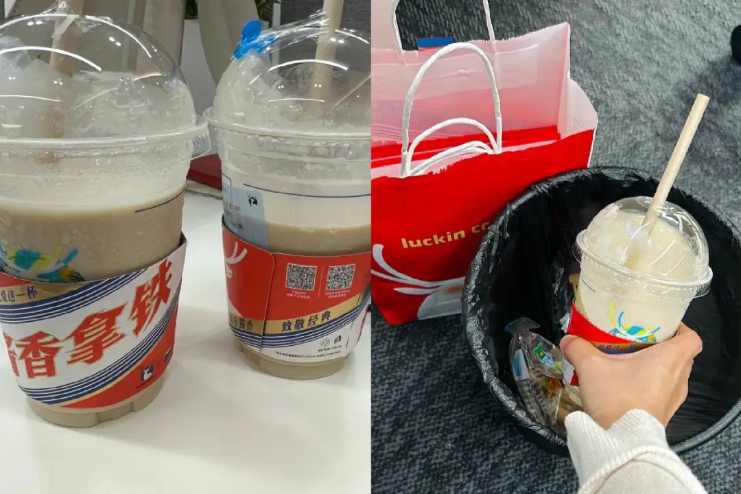 在月月嘬了幾口便扔掉等待頗久的醬香拿鐵之后,月月的好友在微信群發(fā)來反饋,“想扔了too!迸鋱D也是還剩下大半杯的醬香拿鐵。