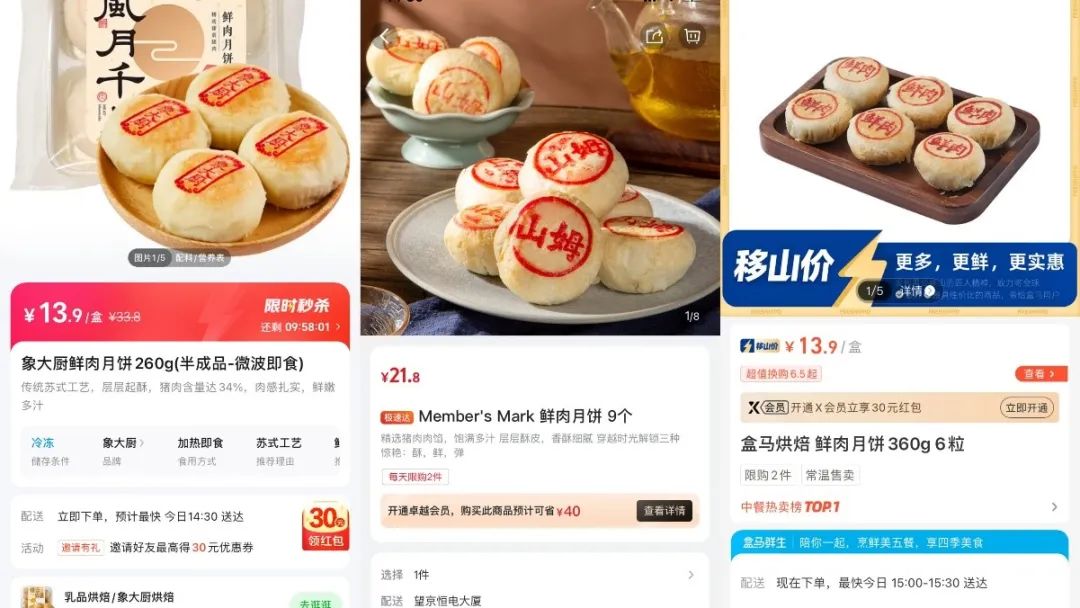 除了“頂流”榴蓮千層蛋糕,還有鮮肉月餅、蛋黃酥、馬斯卡彭牛乳卷、五香鴨翅等熱門商品,瓜果蔬菜、標(biāo)品也都出現(xiàn)在降價(jià)比拼中。