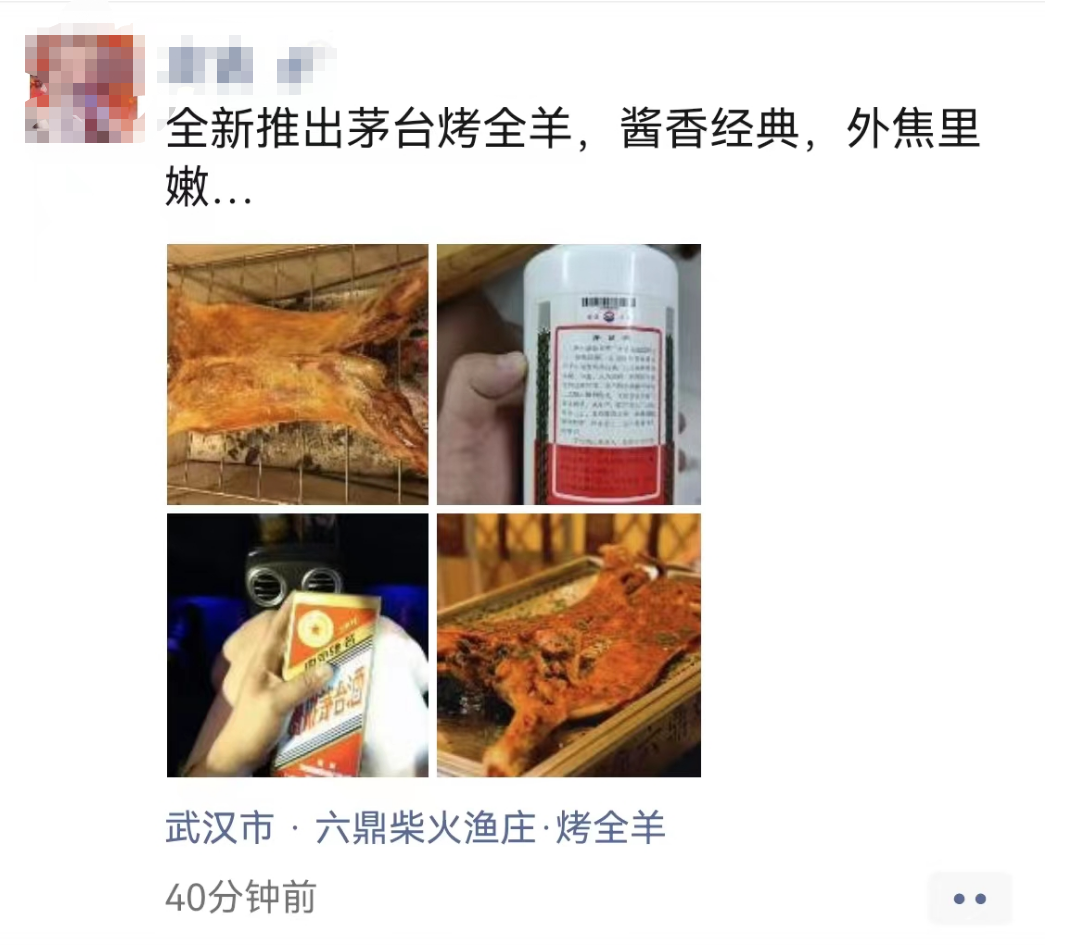 也有餐飲人趁勢推出了“茅臺烤全羊”,打出了“醬香經(jīng)典,外焦里嫩”的賣點。
