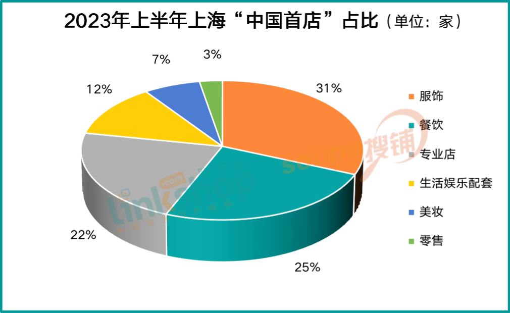 從業(yè)態(tài)來看,服飾有23家,在上半年全部新開“中國首店”中占比31%;位居第二的是餐飲業(yè)態(tài),共開設(shè)18家“中國首店”,占比25%,第三位是專業(yè)店,共新增16家“中國首店”,占比22%,其后是生活娛樂配套、美妝、零售等其他業(yè)態(tài)。