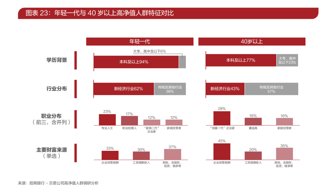 而且,此外,隨著創(chuàng)富一代的年齡上升,二代繼承人漸漸成熟,高凈值人群也逐步年輕化。