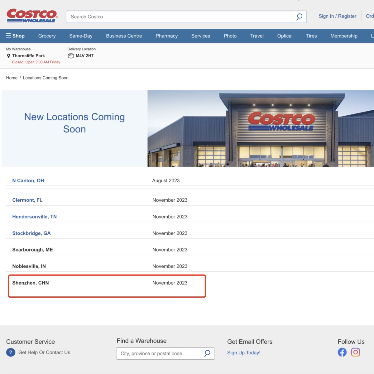 目前,商場主體建筑已大致完成,正加快工程建設(shè)和開業(yè)準(zhǔn)備工作。Costco美國官網(wǎng)顯示,深圳龍華店開業(yè)時間為2023年11月。