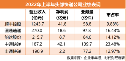 據(jù)時代財(cái)經(jīng)統(tǒng)計(jì),上半年,除韻達(dá)股份外,快遞公司在業(yè)務(wù)量上均跑出了雙位數(shù)的增速。