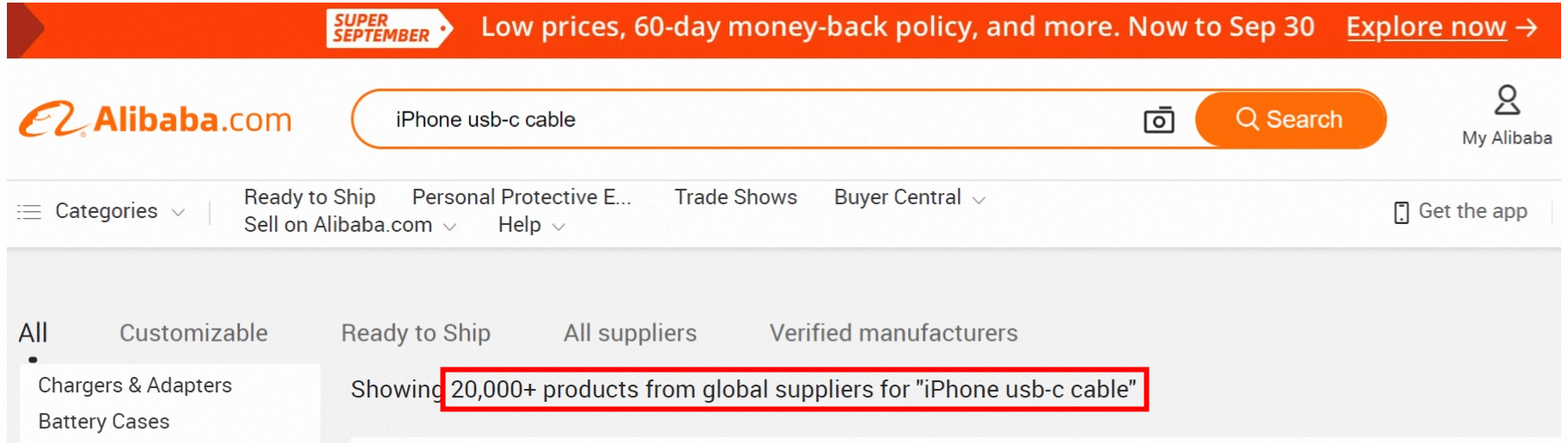 阿里國際站一夜多了2萬款“蘋果USB-C數(shù)據(jù)線”產(chǎn)品