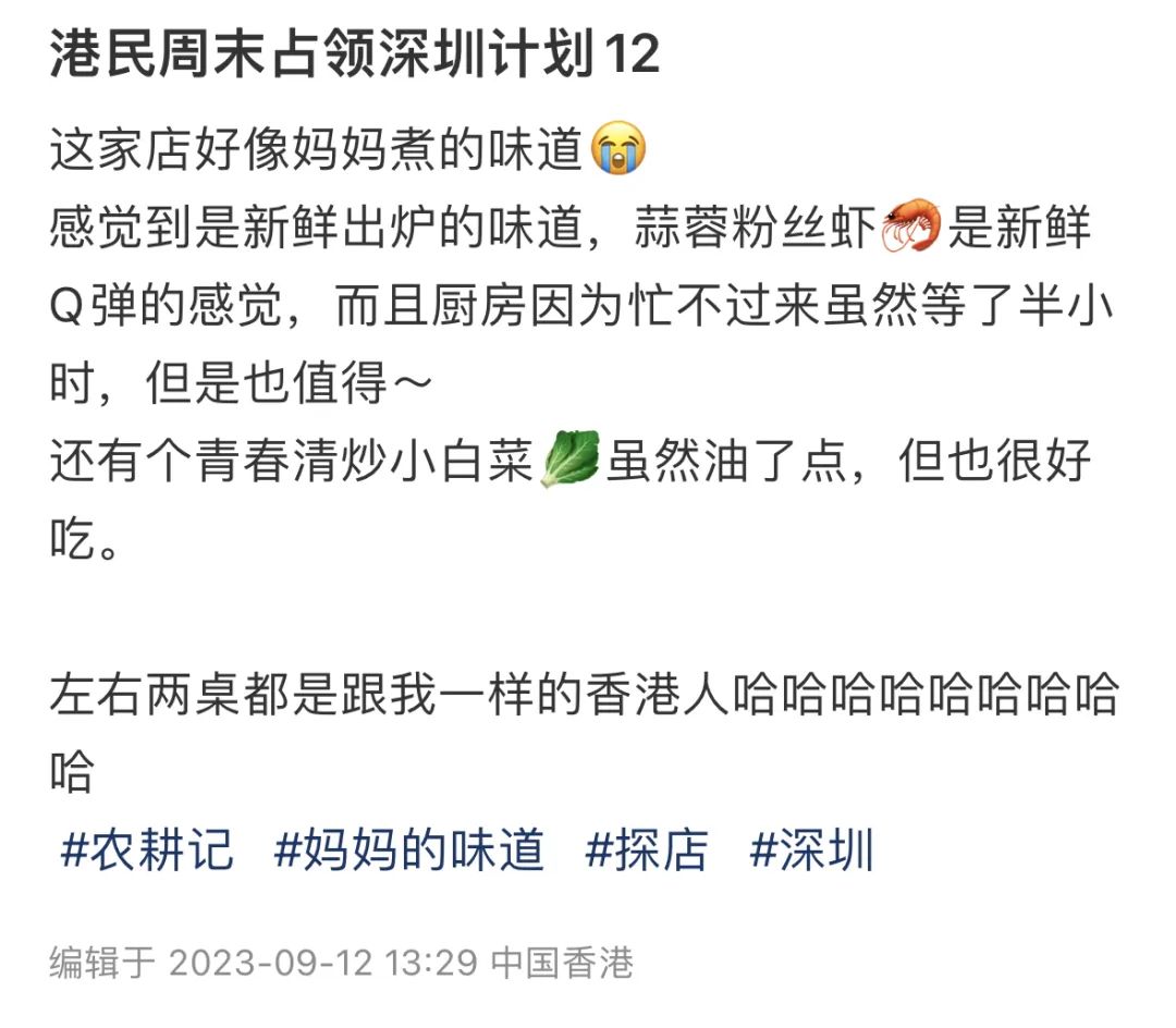 但交通的便利只是港人扎堆來深的表層原因,不少像Amanda這樣的香港本地人高頻來到深圳,只為吃一頓飯,到底為什么?