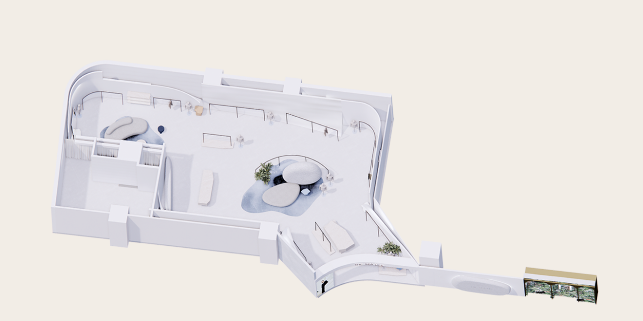 提取自然大海礁石形態(tài)和質(zhì)感以石頭造型裝置點(diǎn)綴店鋪多處,將海洋與空間有機(jī)融合,營(yíng)造風(fēng)格新景,開(kāi)闊空間靈感篇章,傳遞純粹且自然的力量。
