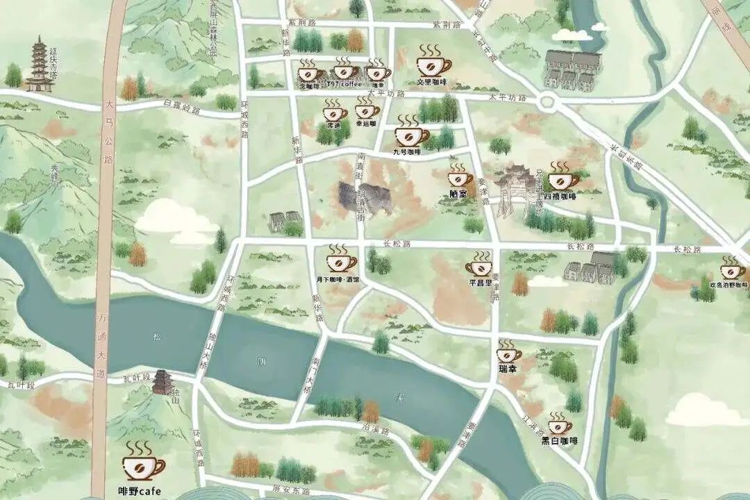 松陽縣的咖啡店已經(jīng)發(fā)展到可以做出一張咖啡地圖了。從上圖可以看出,除了瑞幸、庫迪、幸運(yùn)咖、T97等咖啡連鎖品牌,當(dāng)?shù)剡有很多獨(dú)立咖啡品牌。