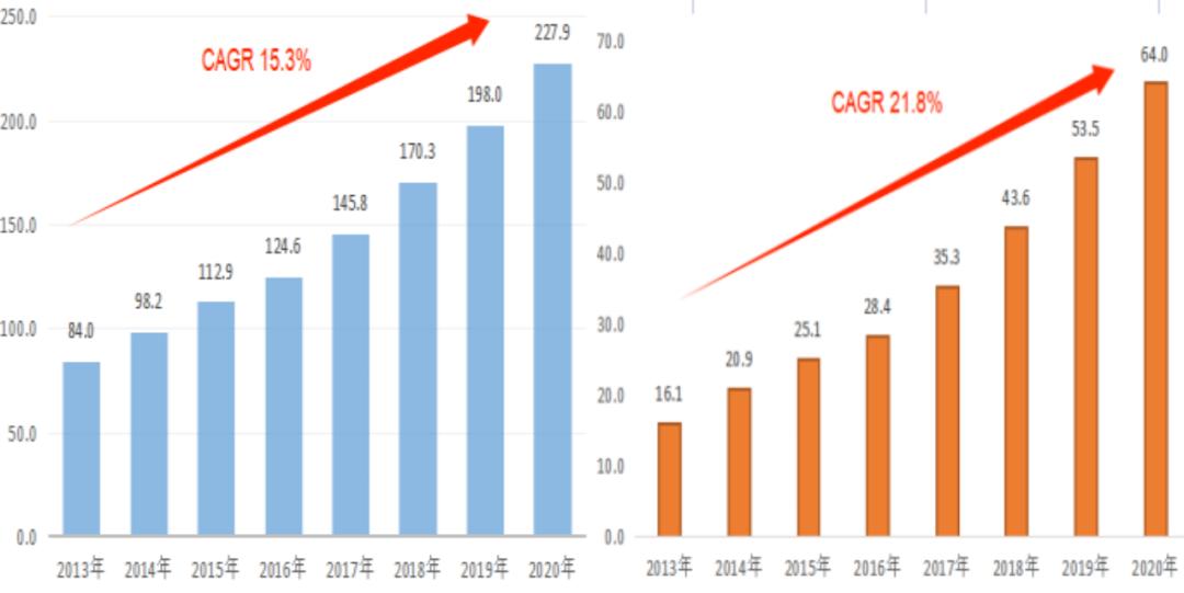 2014年上市以來,海天味業(yè)的業(yè)績一路高歌猛進,營收從2013年末的84.0億上漲至2020年的227.9億,年均復合增速15.3%,長期高達兩位數(shù)的業(yè)績增速使其成為了傳統(tǒng)行業(yè)中不可多得的成長股;不僅如此,在保持高成長性的同時,其盈利能力也維持了不錯的表現(xiàn)。同期,海天味業(yè)的歸母凈利潤從16.1億元一路飆升至2020年底的64.0億元,年均復合增速高達21.8%,凈利率更是多年維持在20%以上的較高水平。