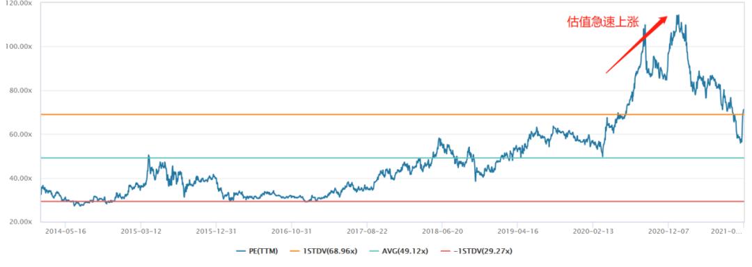除了業(yè)績的失速和輿論危機外,我們認為海天味業(yè)股價暴跌最根本的因素還是因為前期的暴漲推升了公司的估值泡沫,使其業(yè)績實質增速無法匹配高位的估值,最終在安全墊缺失的背景下,導致了海天味業(yè)股價向真實價值回歸。