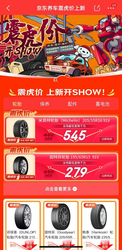 上線初期,“震虎價”已覆蓋輪胎、保養(yǎng)、配件、蓄電池等汽車維修保養(yǎng)多個品類,且產(chǎn)品均為大牌爆品,旨在為消費(fèi)者帶來“優(yōu)選、低價、省心”的消費(fèi)體驗。用戶在京東App搜索“震虎價”即可直達(dá)會場,享受低價的大牌好物。