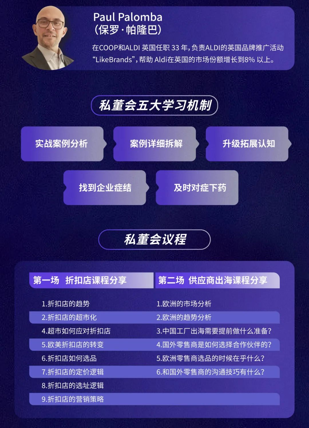 由我愛自有品牌主辦的第一期總裁私享會(huì),特別邀請(qǐng)海外折扣專家Paul Palomba、供應(yīng)鏈專家Koen A.M de Jong,就如何利用自有品牌商品力使零售折扣店突出重圍,如何開拓海外業(yè)務(wù),成為海外零售巨頭供應(yīng)鏈成員等核心環(huán)節(jié)等做深度剖析,為大家展開詳細(xì)的經(jīng)驗(yàn)分享。
