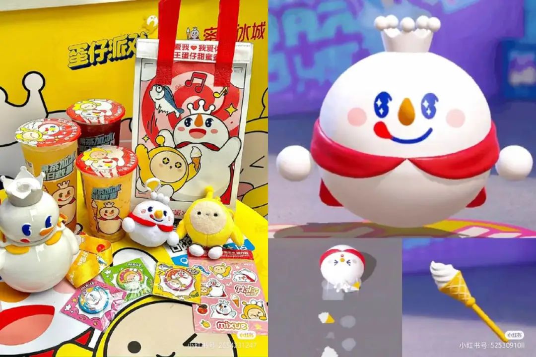 ◎左:蜜雪冰城門店產(chǎn)品及周邊