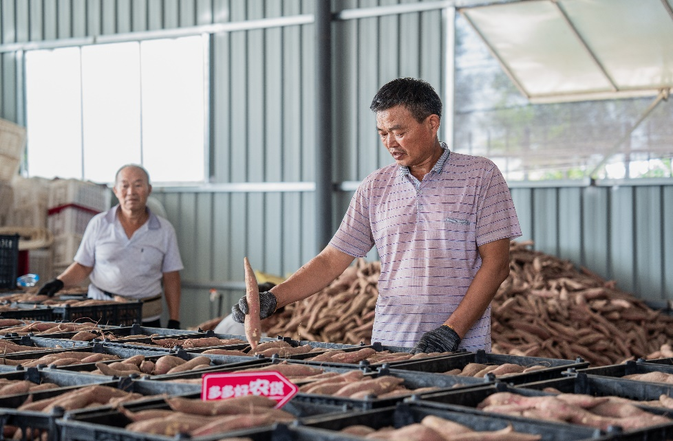 2021年,受洪水影響,村民的紅薯銷不動(dòng),村主任賈壯志學(xué)著在拼多多上開店,幫村民賣紅薯,沒想到一個(gè)半月發(fā)了10萬單,成功為村里的紅薯打開了新銷路。