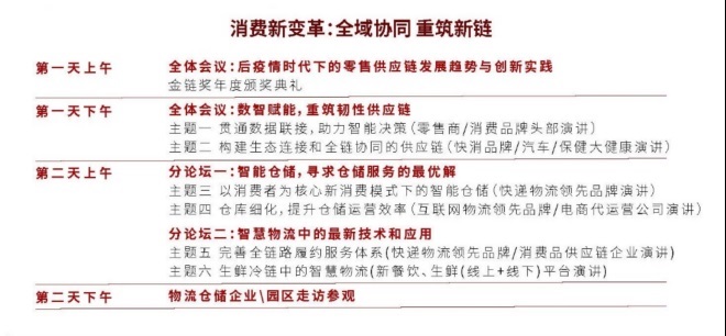 大會第一天全體會議主要圍繞零售商頭部企業(yè)&零售消費品牌&新能源汽車及保健品大健康企業(yè)供應(yīng)鏈轉(zhuǎn)型升級最新實戰(zhàn)經(jīng)驗分享,聚焦于數(shù)字化、智能化以及生態(tài)協(xié)同三方面,協(xié)助與會企業(yè)在筑鏈強鏈上帶來新啟發(fā)和新思考。第二天上午分為智能倉儲和智慧物流兩個平行論壇,主要圍繞當(dāng)前中國倉儲物流中的痛點和熱點進行探討,如倉儲物流的效率革命、一體化供應(yīng)鏈、電商品牌代運營管理、即時零售中的履約力、冷鏈物流、無人配送、Chatgpt的應(yīng)用等,邀請快遞物流領(lǐng)先品牌、電商代運營公司、消費品供應(yīng)鏈企業(yè)、新餐飲、生鮮(線上+線下)平臺等企業(yè)的決策管理者進行探討交流。