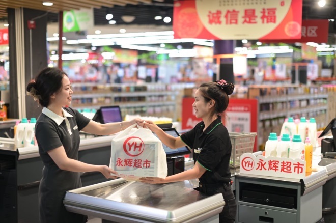 在今年7月第5號(hào)臺(tái)風(fēng)“杜蘇芮”來襲期間,永輝在福建全省的1.3萬名員工全員參戰(zhàn)抗御臺(tái)風(fēng)、保供穩(wěn)價(jià),以滿足福建省各地店倉的供給。