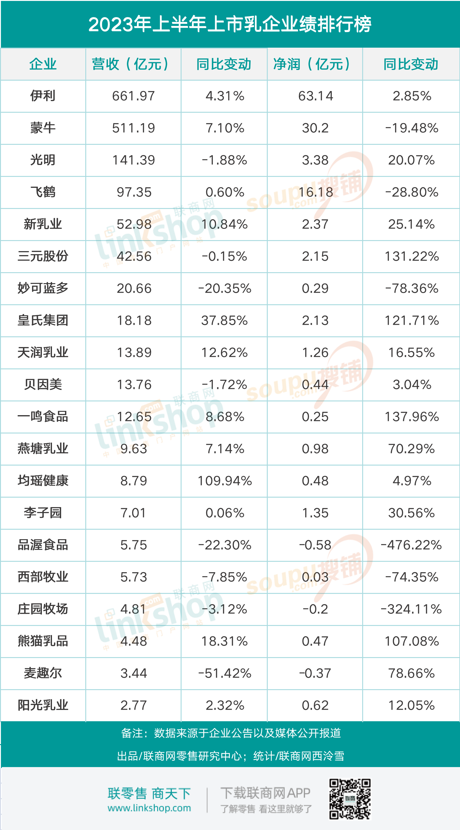 整體來看,上半年不少乳企上市企業(yè)表現(xiàn)良好,營收、凈利增長明顯,頭部乳企穩(wěn)居領(lǐng)先地位。