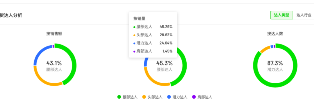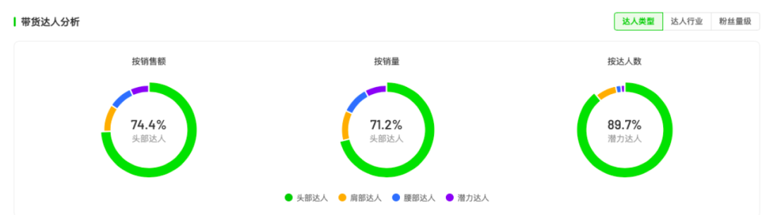 他們主要投放潛力達(dá)人,占比89.7%,而頭部達(dá)人和肩部達(dá)人的占比分別是0.77%和1.89%。