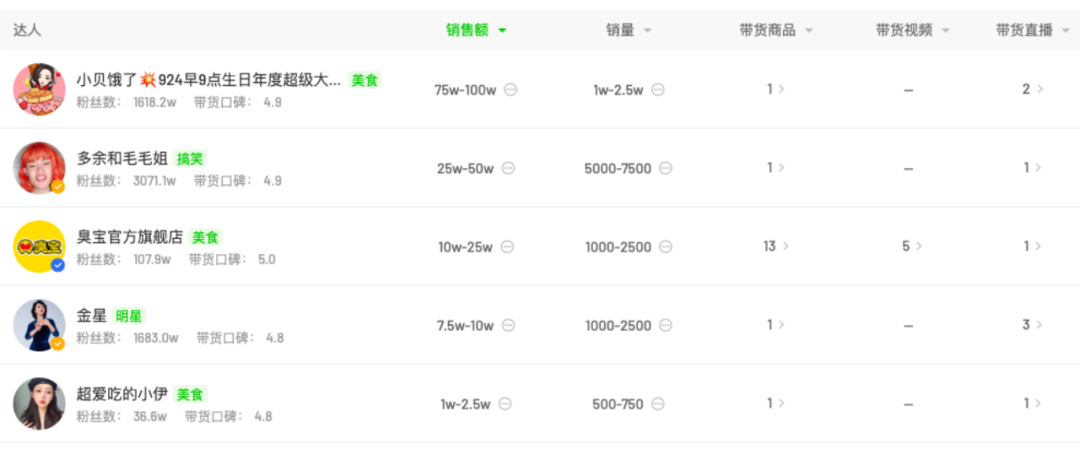當(dāng)時微念只有這一個螺螄粉品牌,而這個品牌又剛剛做抖音,因此,在李子柒抖音賬號前期的投資量很大。他們一次性投放了488位達(dá)人,615場直播,最終完成1萬-2.5萬銷量,75萬-100萬銷售額。