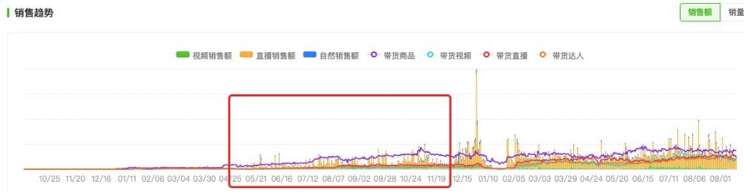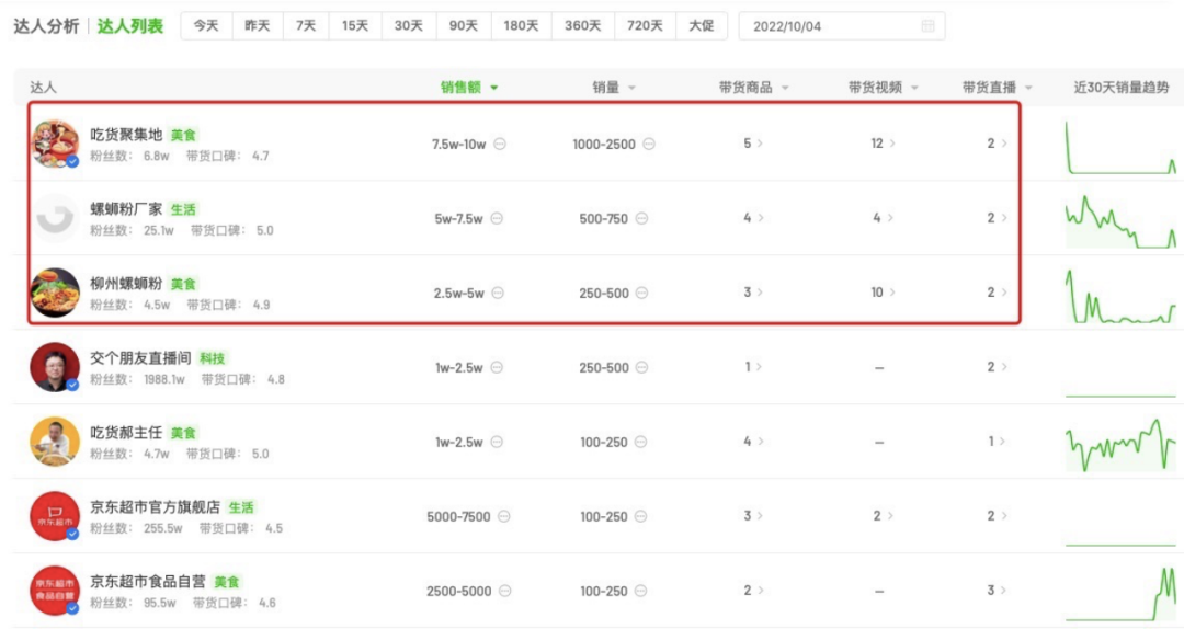 這就引致一個情況是,即便和2022年2月初一樣僅投放了100多個達(dá)人,但10月4日的銷售額可以達(dá)到25萬-40萬,而8個月前,只能做到1萬多銷售額。