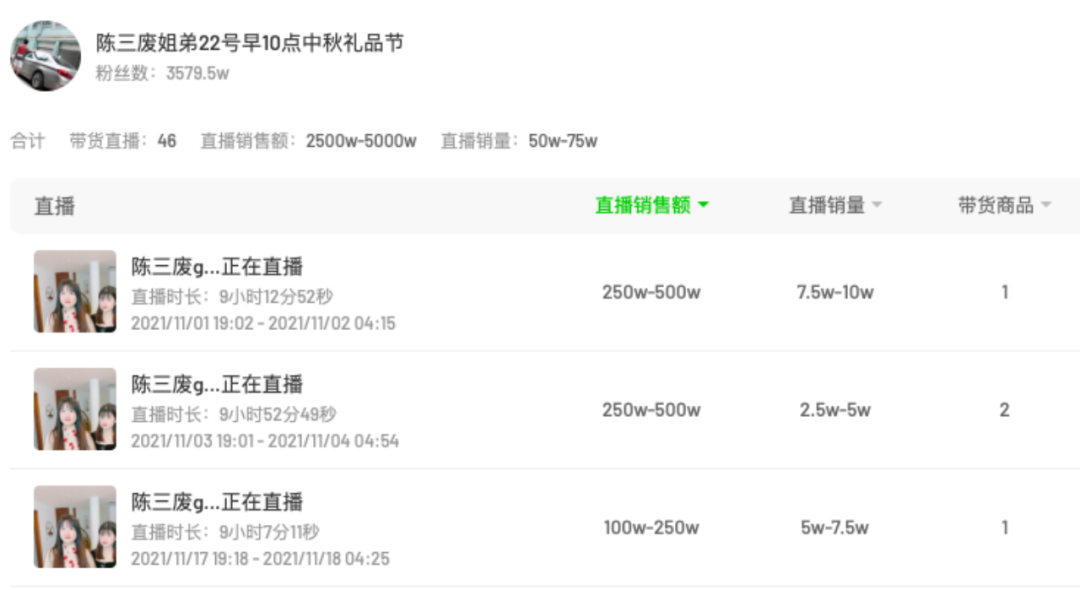 例如微念與@陳三廢合作,單場直播GMV最高達(dá)到250萬-500萬;
