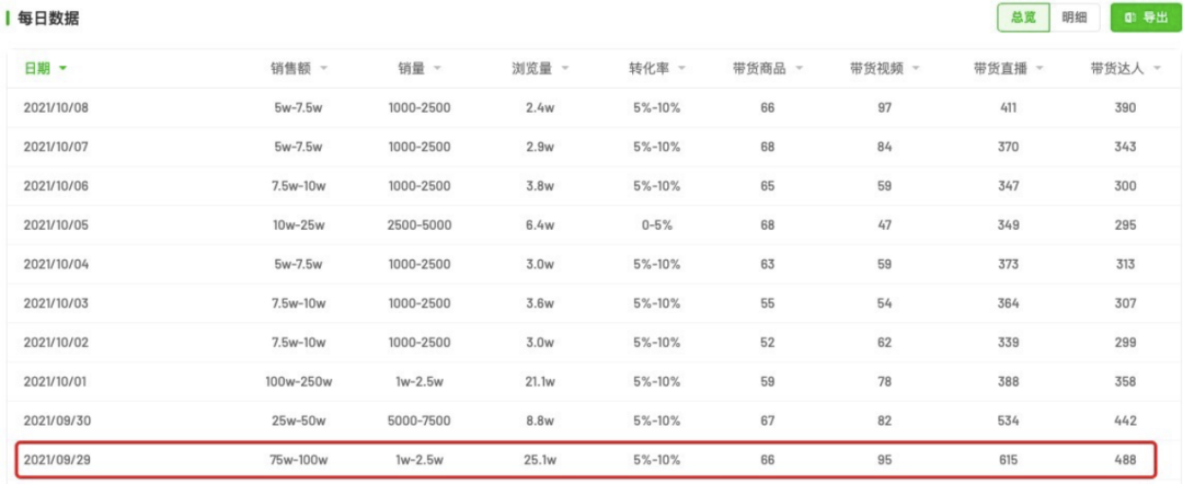 從飛瓜數(shù)據(jù)看到,2021年9月29日,李子柒品牌有了第一次直播帶貨記錄。