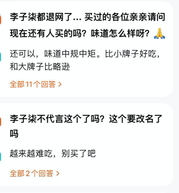 “李子柒不代言這個了嗎?這個要改名了嗎?”