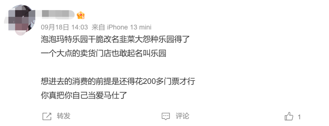 對于這種看似劃算的購買方式,也有人不買賬。其中一位網(wǎng)友發(fā)帖吐槽,“一個大點的賣貨門店也敢起名叫樂園,而且進(jìn)去消費的前提還是得花200多門票才行”。