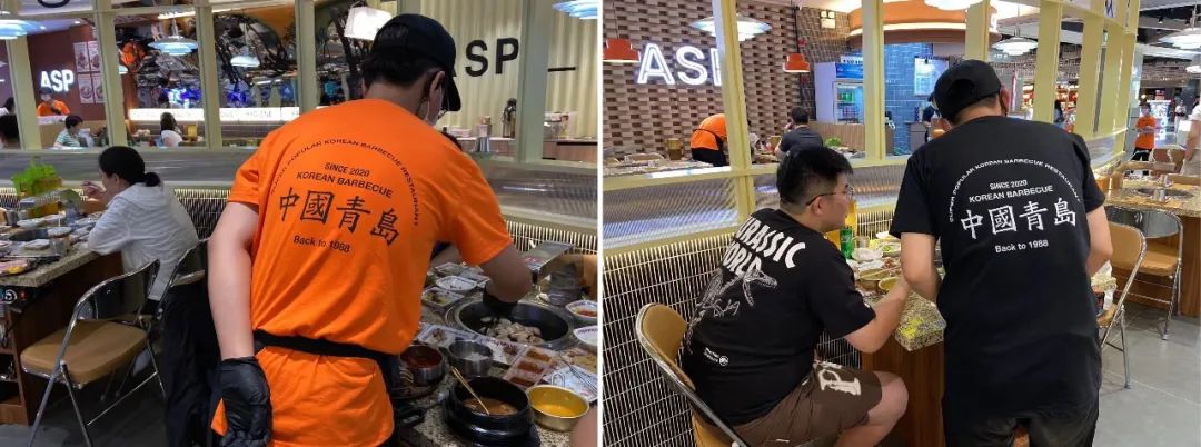 在安三胖的門店中,你能觀察到很多“青島元素“,如工服,背后大寫著“中國青島”。