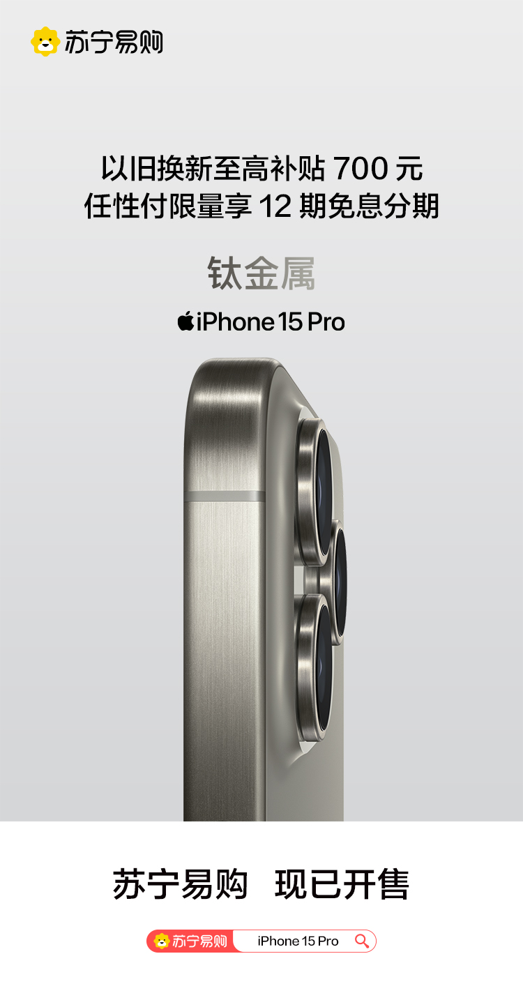 在蘇寧易購APP購買iPhone15系列,可享任性付12期免息和以舊換新最高700元補貼等多重福利 。