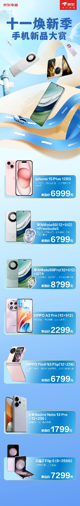 9月手機(jī)新品扎堆上市,可謂“神仙打架”:華為Mate60系列、iPhone15系列、OPPO小折疊、三星第五代小折疊等等。再加上中秋&國慶臨近,很多小伙伴早已經(jīng)“摩拳擦掌”期待著拿著新手機(jī)回鄉(xiāng)送家人或?yàn)樽约宏麆冢〇|五星電器推出的手機(jī)新品大賞包括了市面上備受熱捧的產(chǎn)品,庫存充足,引領(lǐng)國慶手機(jī)“煥新潮”高漲。