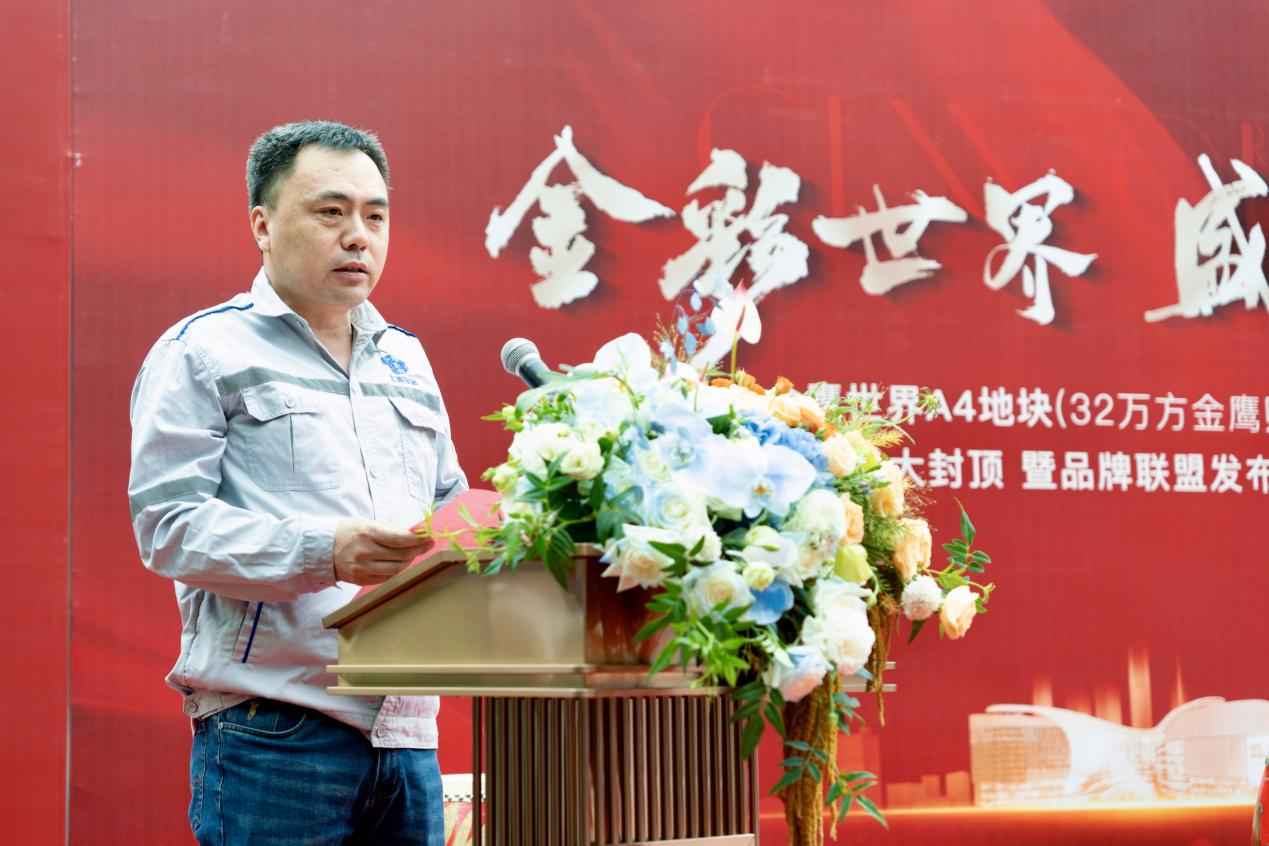 上海寶冶集團南通項目領(lǐng)導(dǎo)申隸華致辭發(fā)言,表達了對金鷹世界購物中心封頂?shù)淖YR、項目建設(shè)取得的成績以及下一階段工作的計劃及信心。