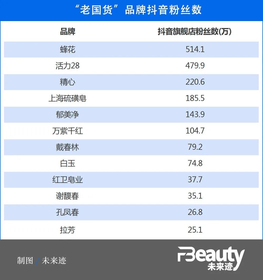 始于1911年的萬紫千紅、1950年的活力28、創(chuàng)立于1931年的白玉牙膏、1979年成立郁美凈等,輪番成為熱門話題。中華老字號孔鳳春、戴春林、謝馥春等品牌也跟著吸粉幾十萬。