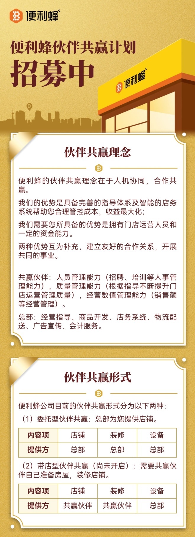 日前,主打直營的便利蜂發(fā)布了“便利蜂伙伴共贏計(jì)劃”,首次向外部加盟商開放包括北京、上海、天津、南京四個(gè)城市在內(nèi)的近2000家店鋪資源。