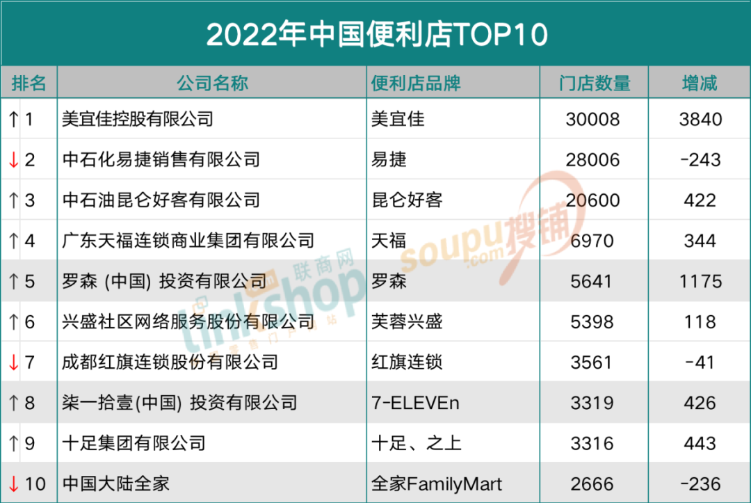 根據(jù)中國連鎖經(jīng)營協(xié)會發(fā)布的2022便利店品牌TOP100,排名前十的都是開放加盟的便利店品牌。