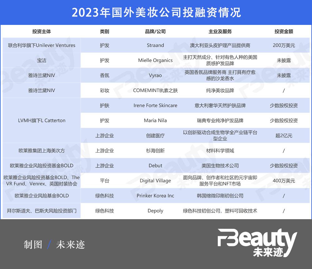 不只是歐萊雅集團(tuán),通過梳理2023年至今,美妝巨頭們的投資情況發(fā)現(xiàn),加碼上游企業(yè)似乎是美妝巨頭們的共識。