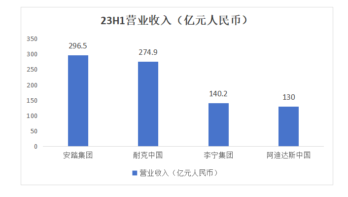 但好在整個市場都在向上,截至8月底,國內知名運動品牌均發(fā)布23H1業(yè)績,據(jù)市界統(tǒng)計,六大體育運動品牌共創(chuàng)收949.94億元,其中國產品牌安踏、李寧的營收和更是超過400億大關,而安踏更是憑借上半年優(yōu)異的表現(xiàn),持續(xù)了2022年的高光表現(xiàn)——超越NIKE,坐穩(wěn)了國內“一哥”的地位。