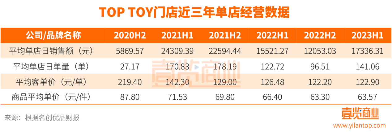TOP TOY 2021財年、2022財年、2023財年的平均單店年銷售額分別為523.03萬元、798.77萬元和563.72萬元,若忽略直營店影響,名創(chuàng)優(yōu)品從中抽取了595.4萬元、687.58萬元和496.萬元的流水作為總部收入,合伙人剩余的毛利分別為-72.37萬元、111.18萬元和67.57萬元。