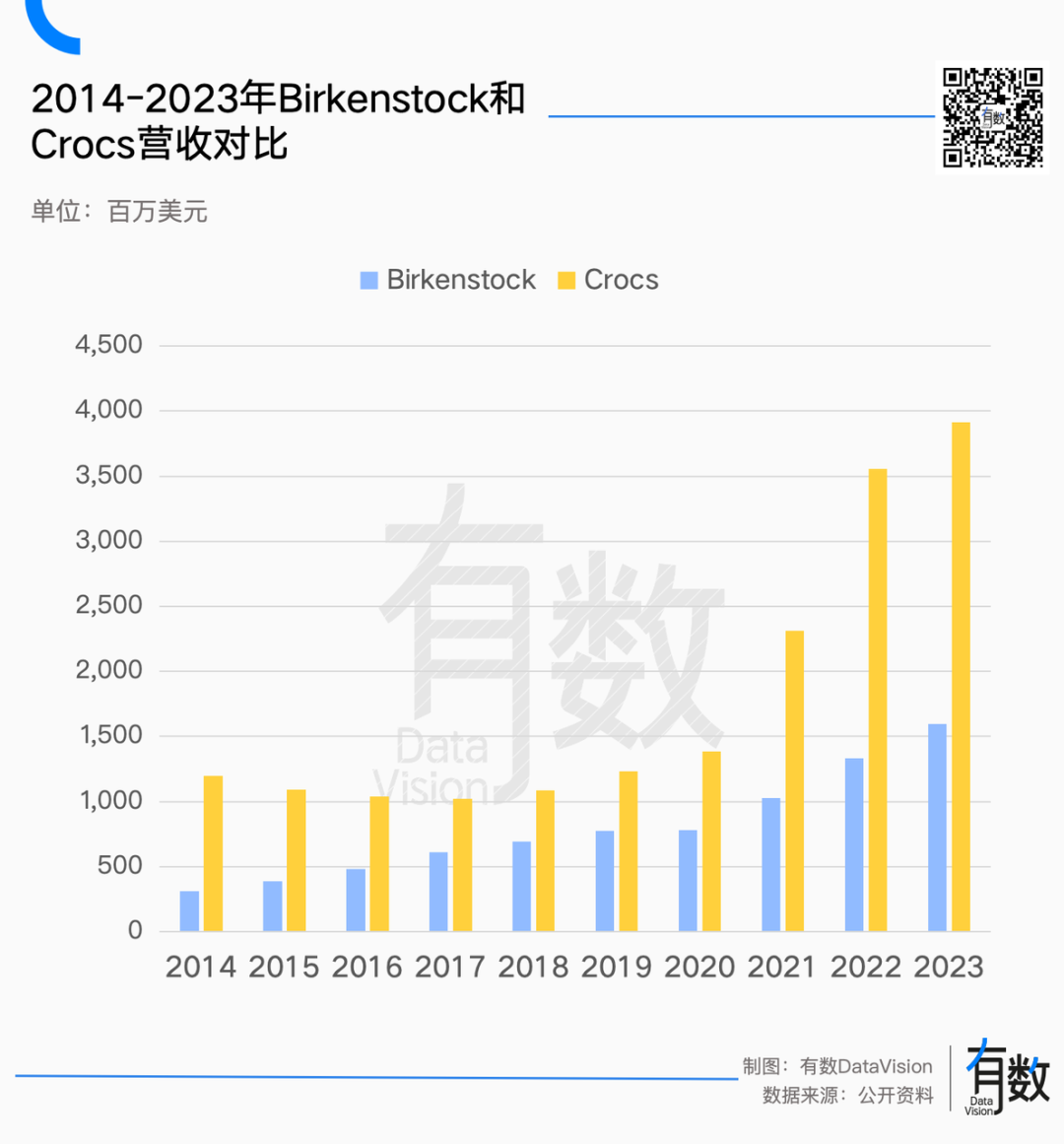 同樣是背負(fù)了“丑鞋”的罵名,Birkenstock的日子卻比Crocs順風(fēng)順?biāo)亩啵鹤?013年經(jīng)營走上正軌后,營收一路高漲,從不到3億歐元漲到了如今的12億。
