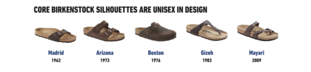 然而這雙丑鞋卻穿越一波又一波的潮流周期,一路火到了現(xiàn)在。Birkenstock大部分款式在上世紀(jì)就問世了,最經(jīng)典的Arizona上市于1973年。如今這些經(jīng)典款為公司貢獻(xiàn)了76%的營收[1]。