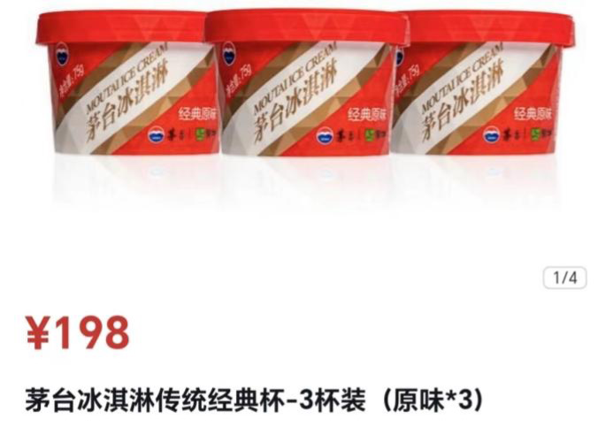 在“i茅臺”上,經(jīng)典原味和香草口味冰淇淋66元/杯,青梅煮酒味59元/杯,三杯原味冰淇淋套餐198元,被網(wǎng)友評價“拳打哈根達斯,腳踢鐘薛高”。
