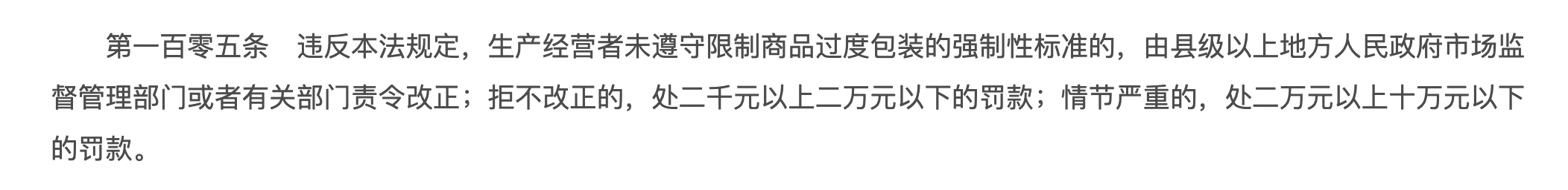 從法律要求來看,《中華人民共和國固體廢物污染環(huán)境防治法》(簡稱“固廢法”)已經(jīng)對企業(yè)過度包裝行為制定了懲罰措施。