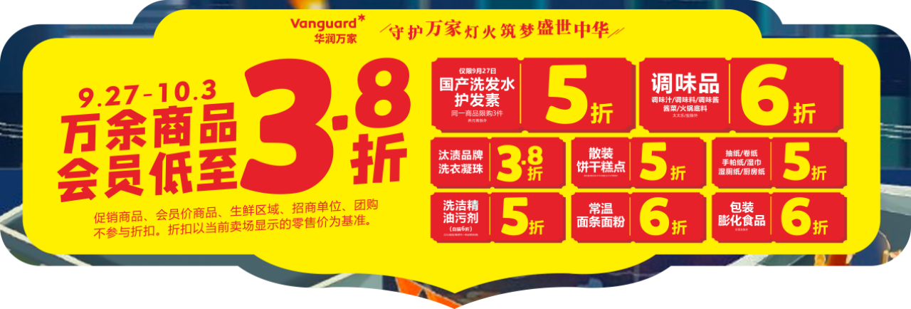 中秋國慶相遇,馬上迎來雙節(jié)小長假啦。為助力消費者假期美好生活,華潤萬家貼心推出“萬余商品低至3.8折”的超值活動,登陸浙江、蘇南各地門店,萬家APP、京東到家、美團外賣、餓了么等各線上平臺也推出多項優(yōu)惠。
