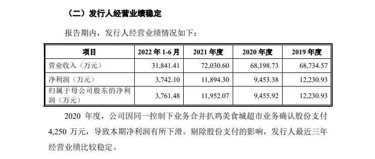 據(jù)其最新披露招股書顯示,2019年—2022年上半年,德州扒雞分別實(shí)現(xiàn)營(yíng)收6.87億元、6.82億元、7.2億元和3.18億元;凈利潤(rùn)分別為1.22億元、0.95億元、1.19億元和0.37億元。