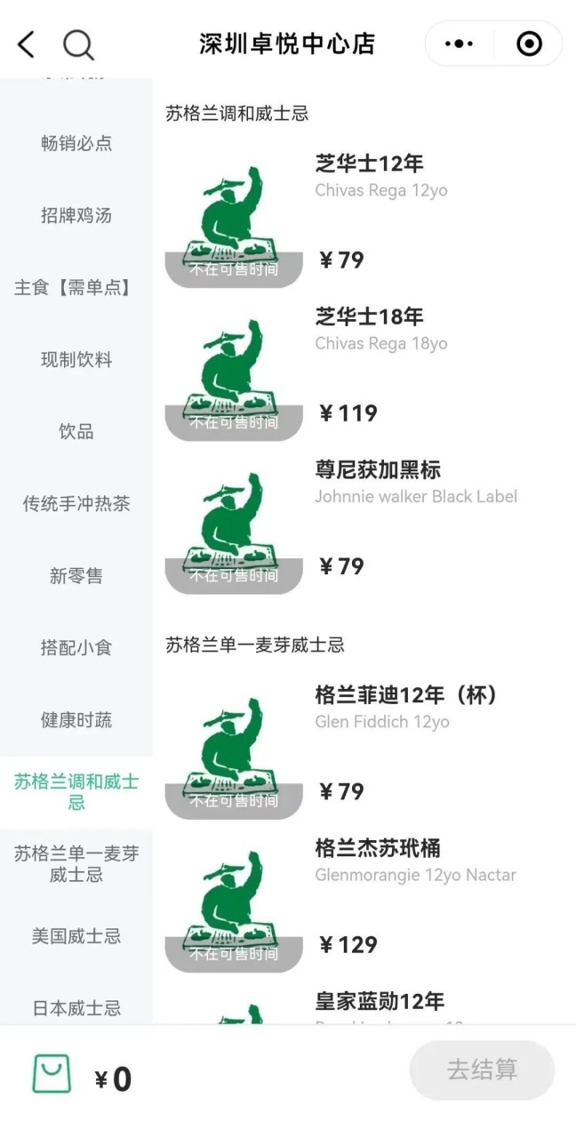 小程序菜單顯示,當(dāng)前該門店提供“傳統(tǒng)手工熱茶”、威士忌系列、蔬菜拼盤等產(chǎn)品,共36個SKU;此前下午茶時段的酸奶、奶茶、冰淇淋等產(chǎn)品已無蹤跡。